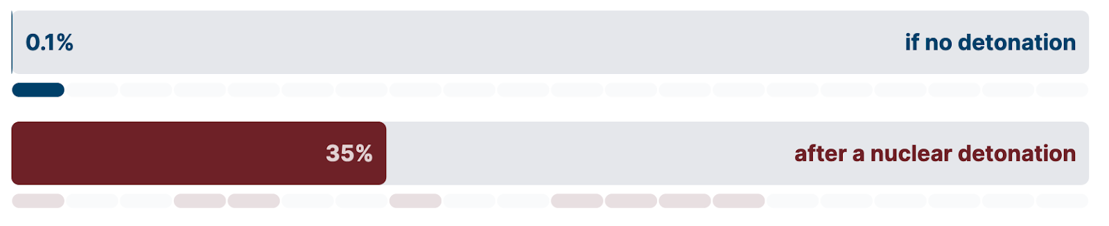 Our forecasters were asked (a second time) how likely it is that a nuclear weapon be detonated in Europe as an act of hostility before 30 April 2023. (The detonation of a dirty bomb does not count as the detonation of a nuclear weapon)